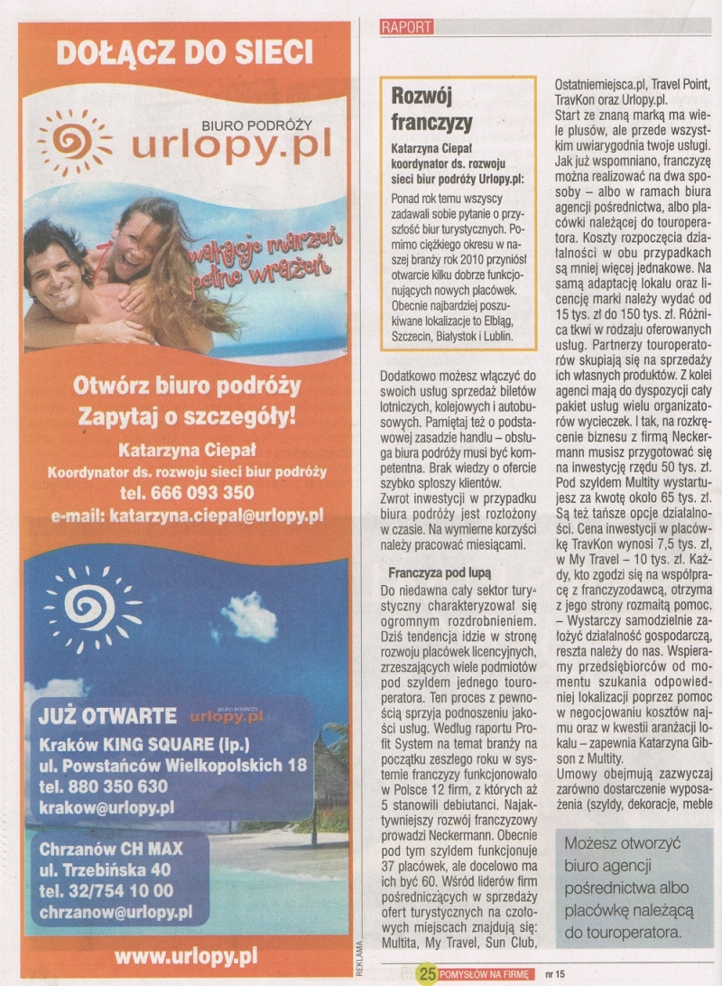 Prasa o biurach podróży.